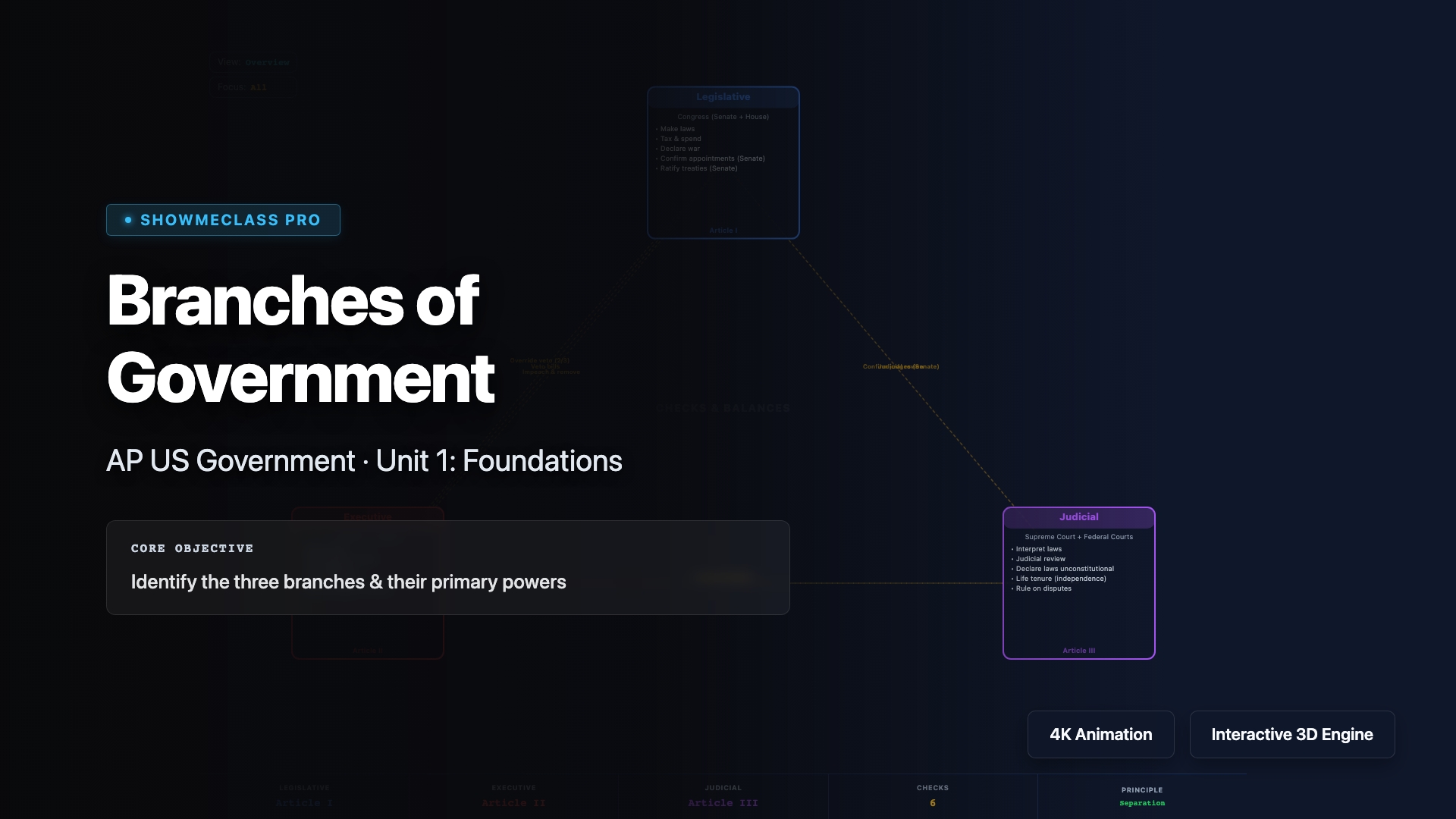 Interactive timeline of all 27 Constitutional Amendments from 1791 to 1992. Color-coded by category: Bill of Rights, Reconstruction, Voting Rights, Government Structure. Click any amendment dot for full text summary, historical context, and landmark case connections. Filter by category. Era highlights show Bill of Rights, Reconstruction, Progressive, and Civil Rights periods.